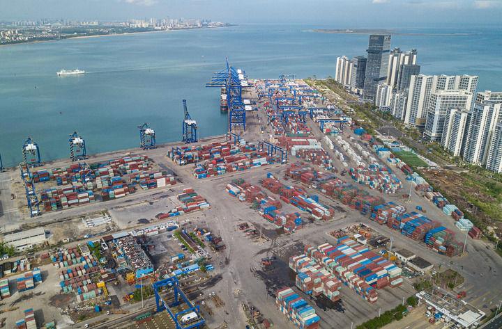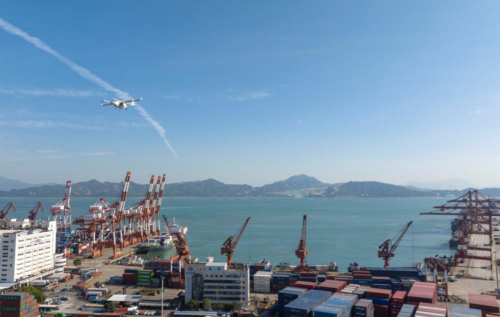 △无人机搭载快件从珠海飞抵深圳蛇口集装箱码头起降点。